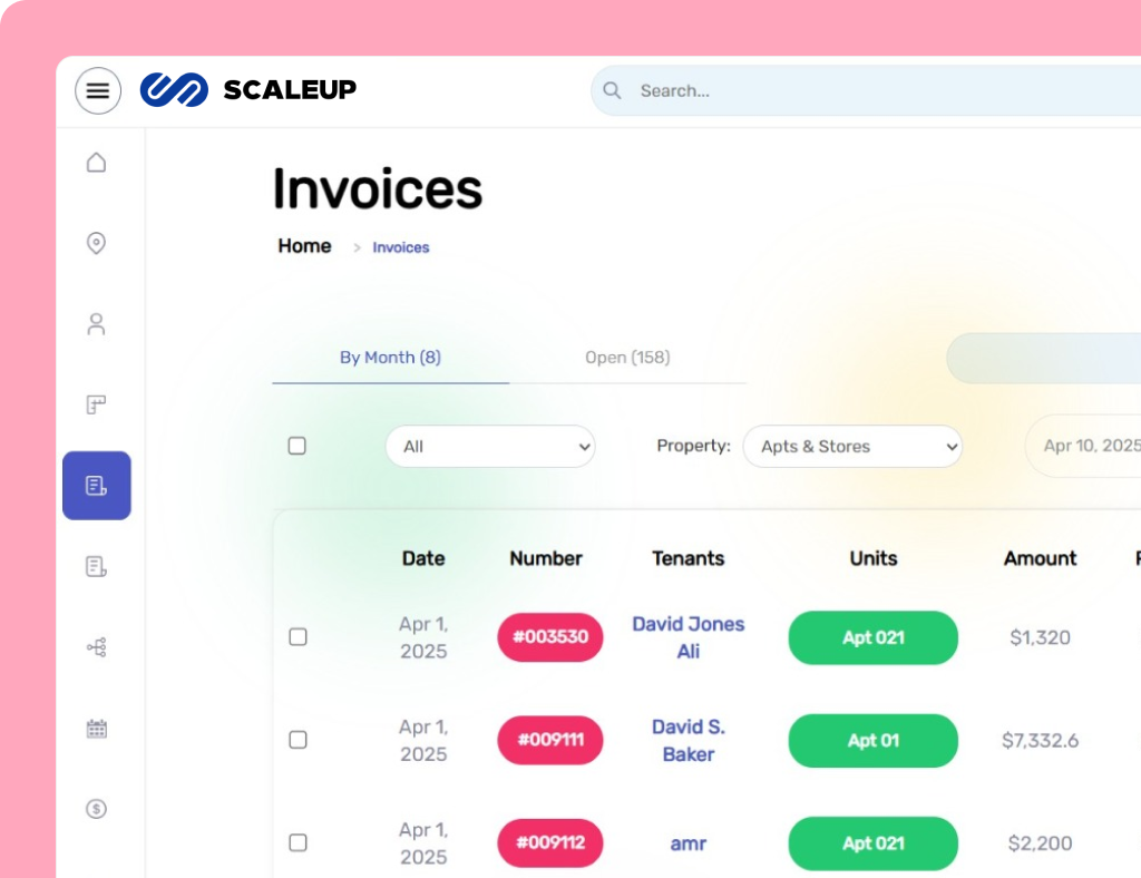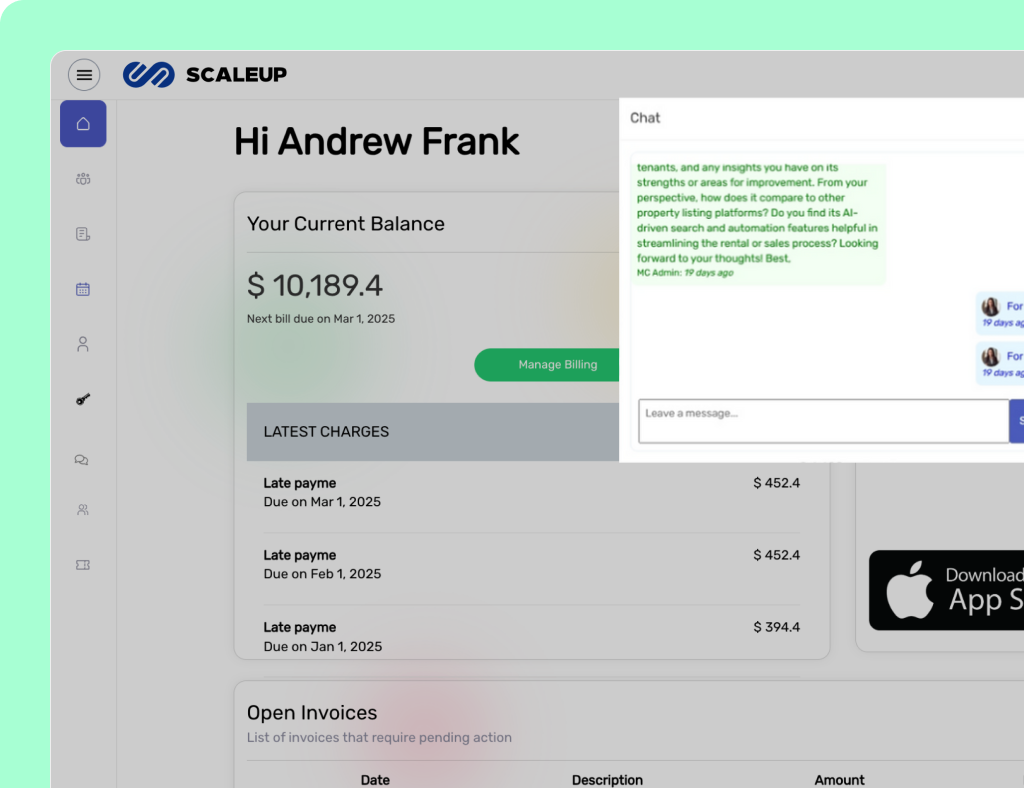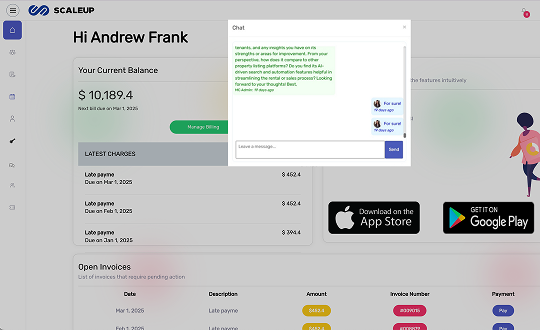 Discover the powerful features of SCALEUP designed to simplify property management. From automated rent collection to smart tenant communication, we help you manage properties effortlessly. Stay organized, save time, and boost efficiency—all in one platforms.